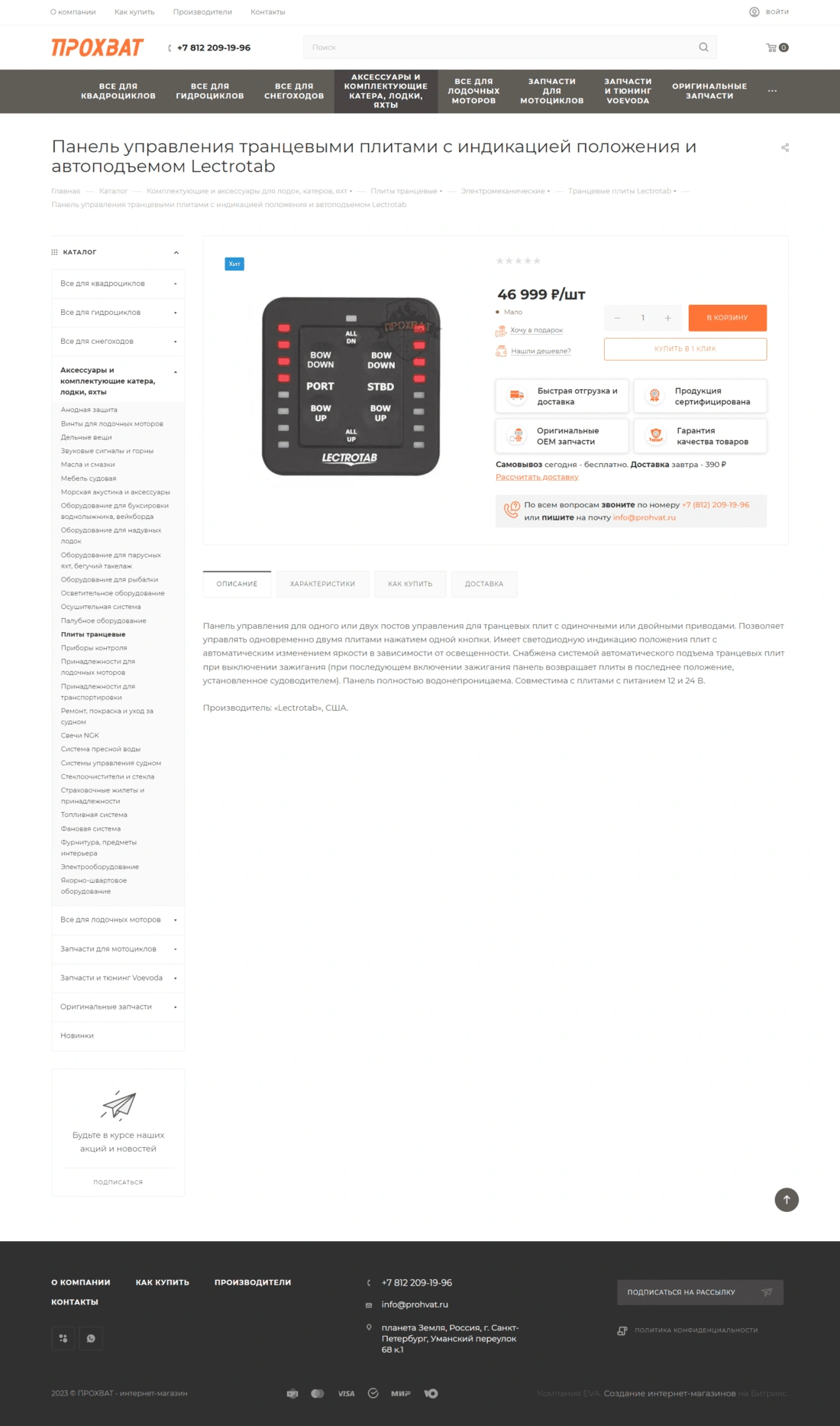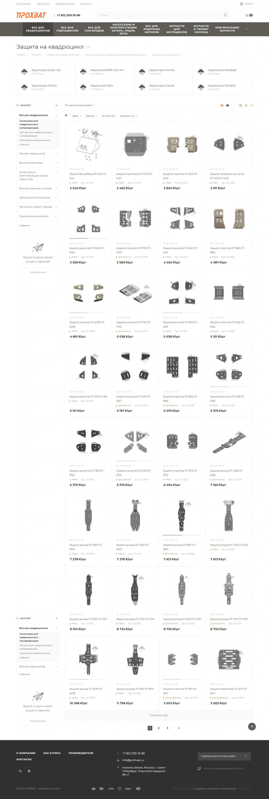Интернет-магазин Прохват специализируется на продаже фирменных запчастей, масел и аксессуаров для квадроциклов, мотоциклов, снегоходов и прочей техники для активного отдыха. Компания сотрудничает с ведущими отечественными и зарубежными производителями Arctic Cat, BRP, Yamaha, Polaris, Kawasaki. Предлагает широкий ассортимент запчастей в наличии и осуществляет поставки под заказ, является официальным дилером продукции Voevoda.