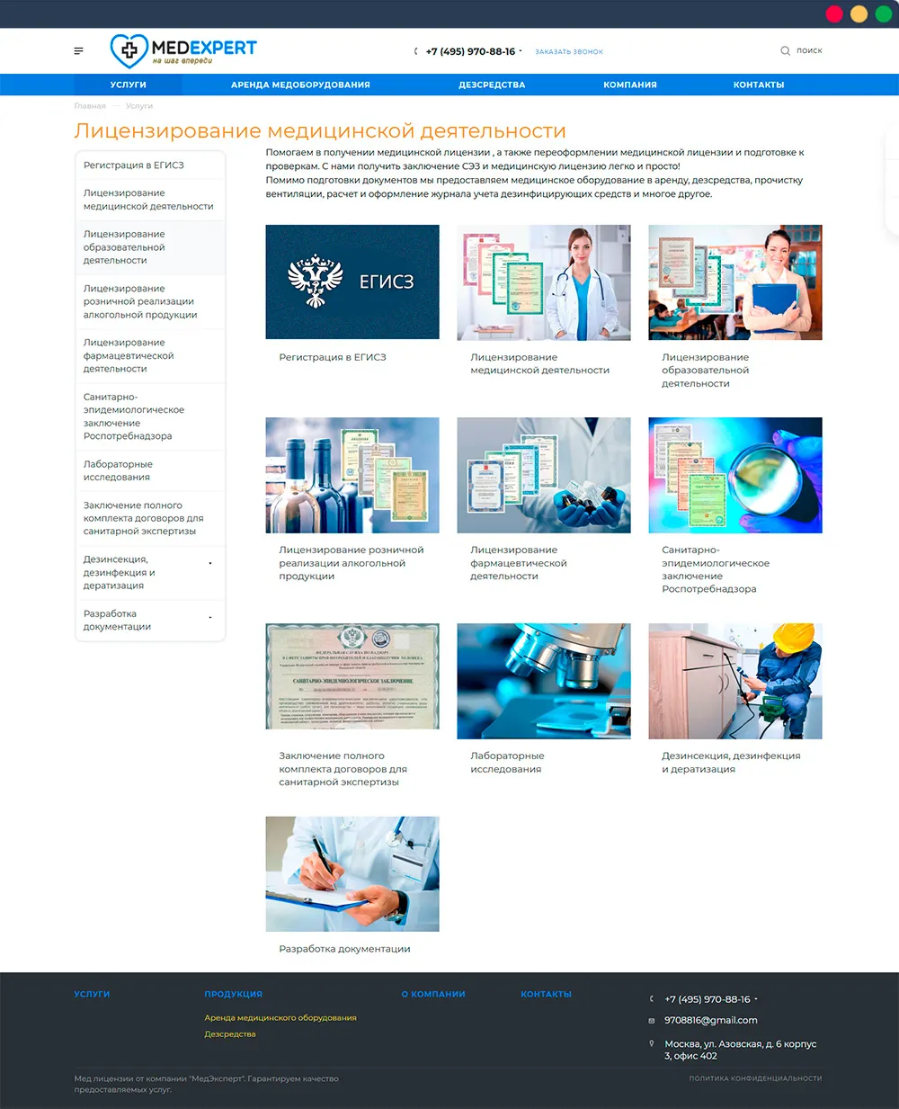 Проанализирована ниша сайтов выдающих лицензии, разрабатывающих документацию и СанЭпидЗаключения
