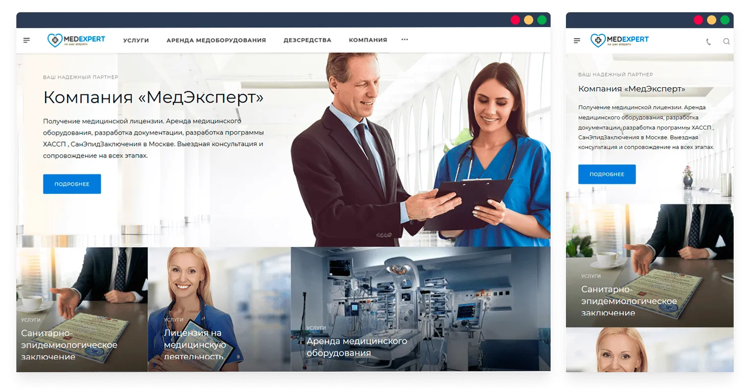 В рамках проекта проведен анализ ниши и собрана информация по услугам. Разработана концепция сайта с разделением на три основных направления. Выполнены работы по дизайну: подбор цветовой гаммы, уникализация главной страницы, прорисовка баннеров, иконок, инфографики и разработка логотипа. Проведена техническая реализация: доработка мобильной версии, программирование инфоблоков, проработка структуры и обеспечение SEO-готовности ресурса.