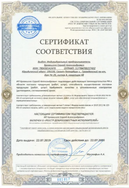 В 2019 мы подтвердили стандарты по управлению качеством: мы аттестованы по ISO 9001:2015 и имеем сертификат о включении в «Реестр добросовестных исполнителей».